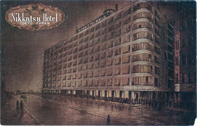 Nikkatsu Hotel, Tokyo, c. 1965. The first modern office building built in Tokyo after World War II, the Nikkatsu International Building was completed in 1952 just as the Occupation of Japan was ending. Occupying the four top floors of the building was the 133-room Nikkatsu Hotel, at that time the only serious rival to the Imperial Hotel in terms of luxurious accommodations and convenience. The buildings International Arcade included airline ticketing offices (including both Pan American Airways and Northwest Orient Airlines), a host of duty-free shops selling cameras and electronics, and the American Pharmacy.