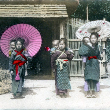Onnanoko carrying child, c. 1910.