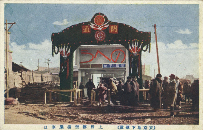 Ground level entrance on opening day outside the government railway’s Ueno Station. Tokyo Chikatetsu Ueno Station, December 1927.
