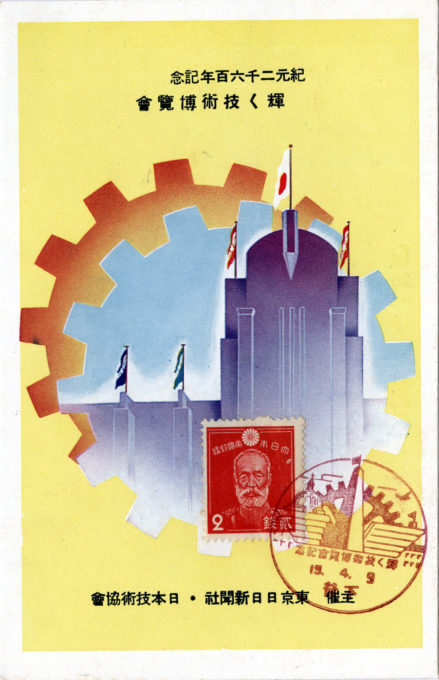 Exposition of Shining Technology, 1940. In an effort to bolster national morale, the 2600th anniversary of the founding of the Japanese Empire was celebrated in 1940. The special dating system (no longer used) was called koki, the Imperial Dating System. The first year assigned was 600 BC, the date given the mythical founding of Japan by Emperor Jimmu. The 2-sen stamp depicts the late General Nogi Maresuke, hero of the Russo-Japanese War (1904-1905).