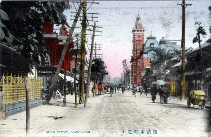 Main Street, Yokohama, c. 1920. On the right is the Port Opening Memorial Hall, colloquially known as “Jack’s Tower”.