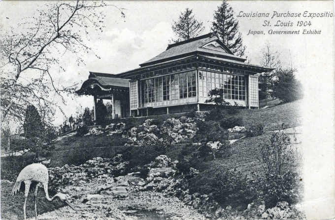 Japan Government Exhibit, Louisiana Purchase Exposition, St. Louis, Missouri (USA), 1904. The tea house and Japanese garden exhibit included a reception hall, and was one of several elaborate exhibits of the Empire of Japan on display at the world’s fair.
