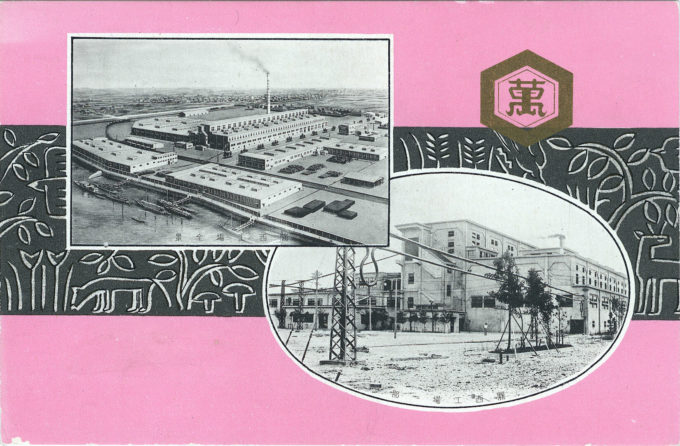 An aerial view of the Kikkoman shoyu factory at Noda, Chiba Prefecture, c. 1930. When it was first opened in 1926, Factory 17 (as it was known) boasted the largest and most mechanized shoyu production facilities in the world with an annual production capacity of over 6.7 million gallons.