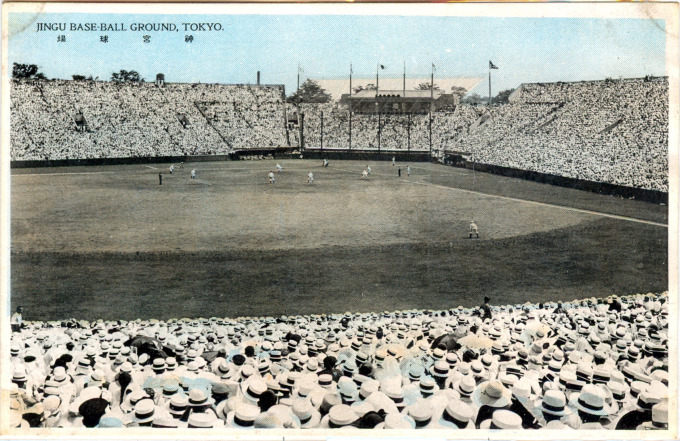 “Jingu Base-ball Ground”, Tokyo, c. 1930. Meiji Jingu Stadium opened in 1926, and is the second oldest baseball stadium in Japan. It is also one of the few professional stadiums still in existence anywhere in the world where Babe Ruth played.