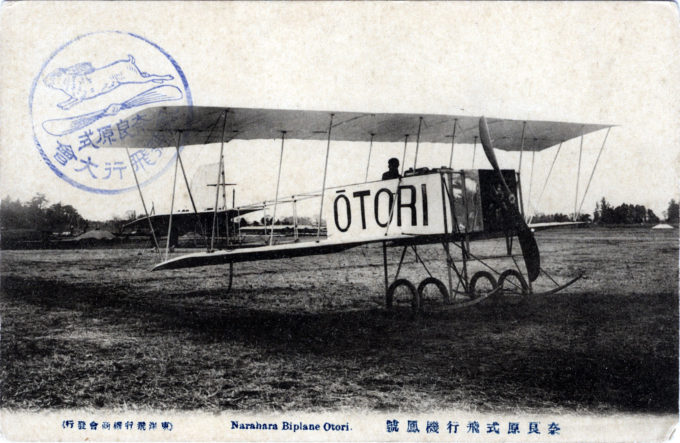 Narahara #4 Otori-go Aeroplane, c. 1912, at Tokorozawa airfield. The go suffix is used as an honorific [ご]; not to be confused with the number go [五, i.e. 5].