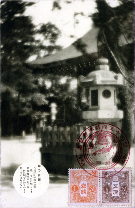 First national census commemorative postcard, 1920. The postcard is captioned with the date of the first census: Taisho 9.10.1 (Oct. 1, 1920).