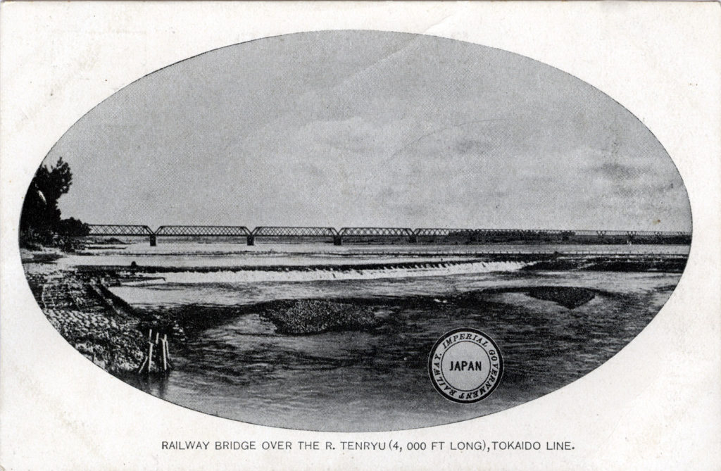 “The most striking of these is that across the Tenryu River, 164 miles from Tokyo. This is a 19-span through truss bridge, 3900 feet in length. Long bridges of similar construction are encountered repeatedly along the lines of the railway.”