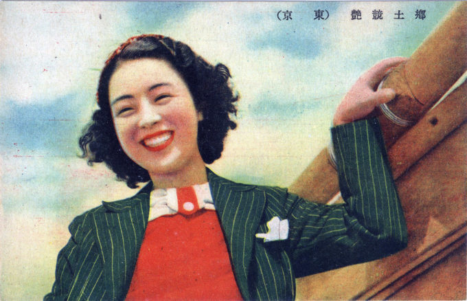 Nohonshugi (“agrarian fundamentalism”) propaganda postcard, c. 1940, captioned “郷土競艷” [“Bewitching beauty of the local area”]. Nohonshugi was first formulated as an ideology in the Meiji Period as a reaction against attempts to promote industry and commerce at the expense of agriculture. Romanticized by militant nationalists, who denounced industrialization, bureaucratization, and the “invasion” of Japan by foreign cultures, the movement in the 1930s became absorbed into the overall nationalist ideology and kokutai [“national essence”] that opposed the earlier liberal “Taisho democracy” of the 1920s.