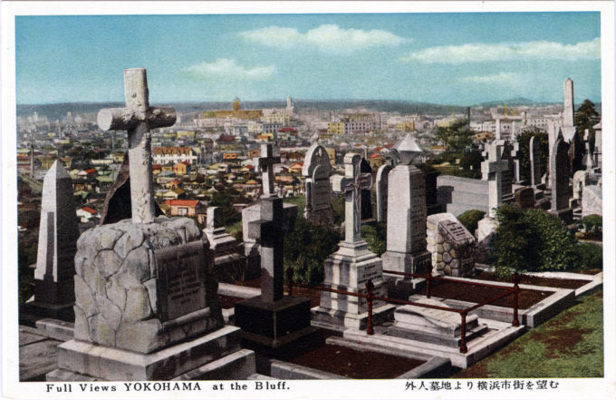 “The Yokohama Foreign General Cemetery, located in Yamate Naka-ku, Yokohama, and one of four cemeteries for foreigners in the port city, was first established in 1859 soon after the opening of the Port of Yokohama. The current cemetery consists of 22 sections in an area of 18,500 square meters. In 1864, a memorandum for the foreign settlement at Yokohama was signed by the Tokugawa shogunate with the legations of the main trading nations permitting the extension of the cemetery area to the top of the Bluff opposite the Anglican Christ Church.