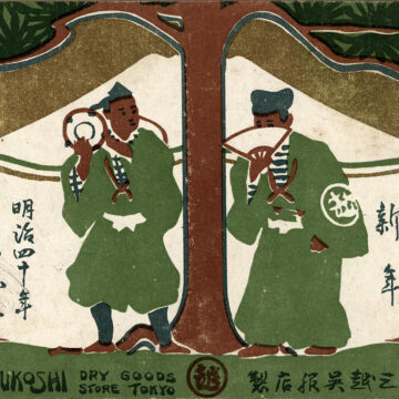 Aizuya Honten Lacquerware Wholesaler, New Year’s advertising postcard, Nihonbashi, Tokyo, c. 1905.