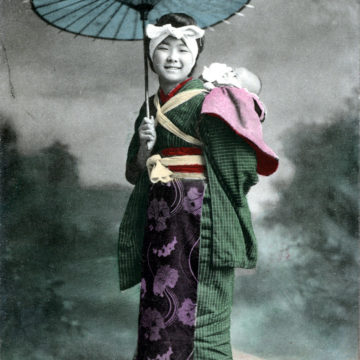 Onnanoko carrying child, c. 1910.