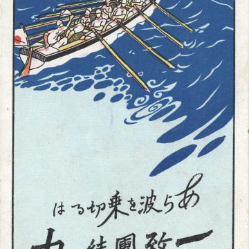 “Solid nation union to sail in rough sea” propaganda postcard, c. 1940.
