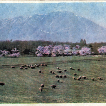 Sheep grazing in the shadow of Ezo Fuji, Hokkaido, c. 1930.