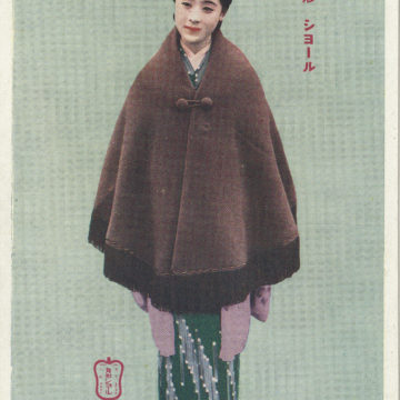 Marugata (round-shaped) woolen shawl, advertising postcard, c. 1930.