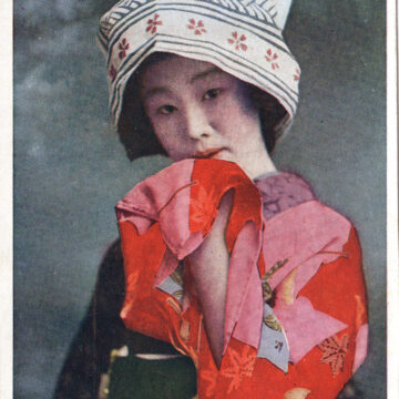 Maid holding “tenugui” [cotton hand towel], c. 1920.