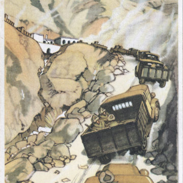 “Breaking through the barrier” propaganda postcard, Yànménguān (Yanmen) Pass, Shanxi Province, China, 1937.