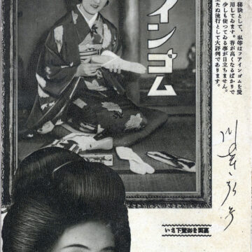 “Stand Tall”, Fine Rubber zori inserts advertising postcard, Nihonbashi, Tokyo, c. 1930.