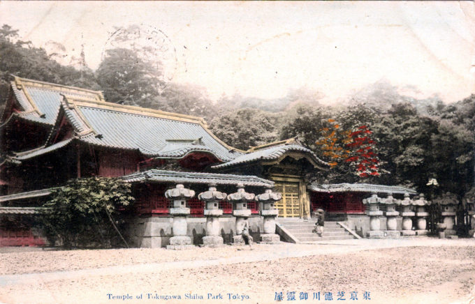 One of the Tokugawa burial sites at Zojo-ji, Shiba Park, Tokyo, c. 1910. Zōjō-ji is notable for its relationship with the Tokugawa clan, the rulers of Japan during the Edo period, with six of the Tokugawa shōguns being buried there.