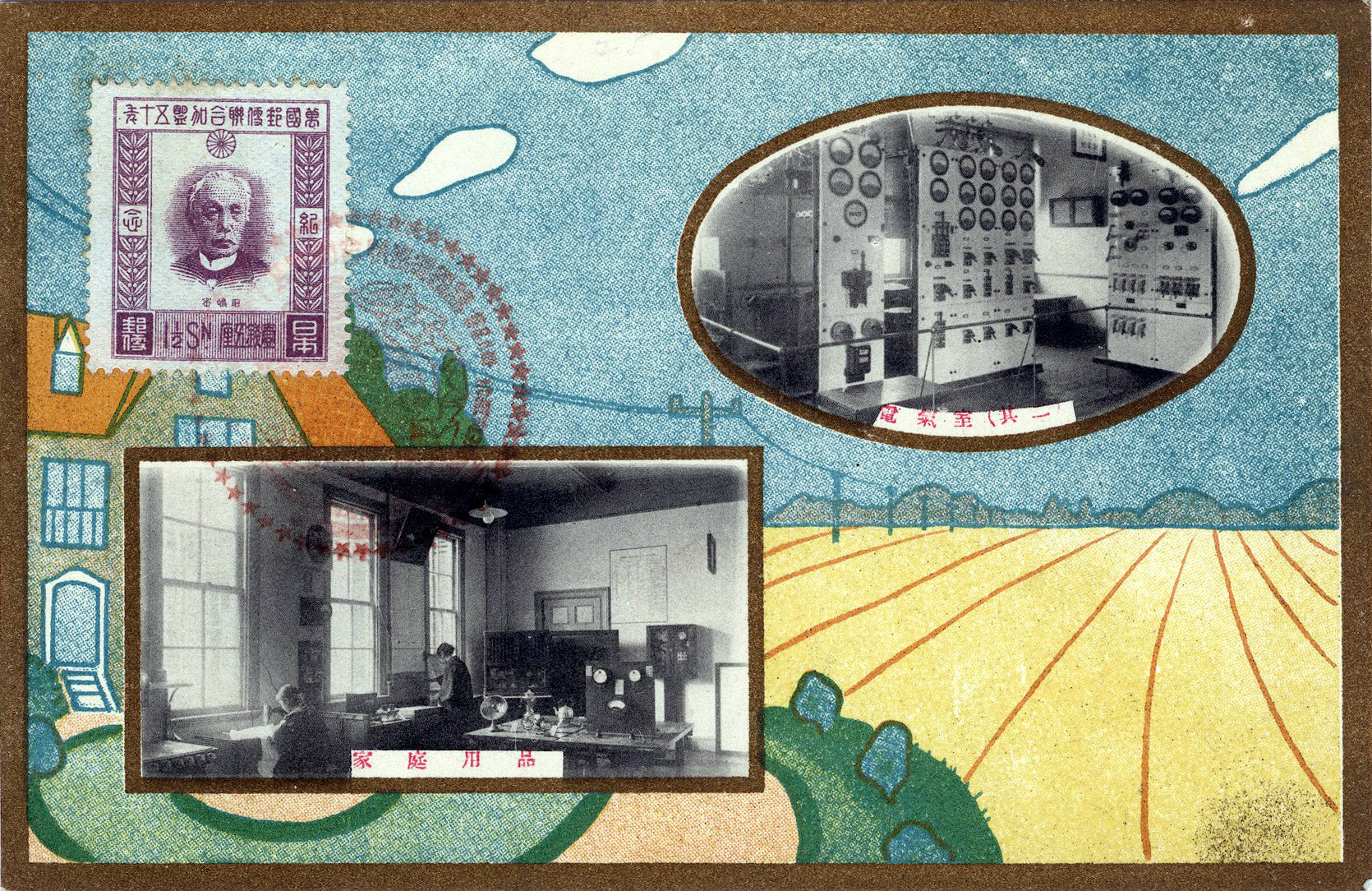 50th Anniversary of the Telephone commemorative postcard, 1926, with a postage stamp honoring Baron Maejima Hisoka. One year after its invention in 1877 by Alexander Graham Bell, the telephone became available in Japan. At first its use was reserved for the government, public affairs organizations such as the police, and a few businesses. Appointed to the Ministry for Popular Affairs in 1870 Baron Maejima would later establish Japan’s postal system in 1877. Later, as Vice-Minister of Communications, the baron also established Japan’s state-owned telephone service in 1890, making the telephone available to businesses and the general public. The first lines were laid between Tokyo and Yokohama, connecting 155 Tokyo subscribers to 42 in Yokohama.