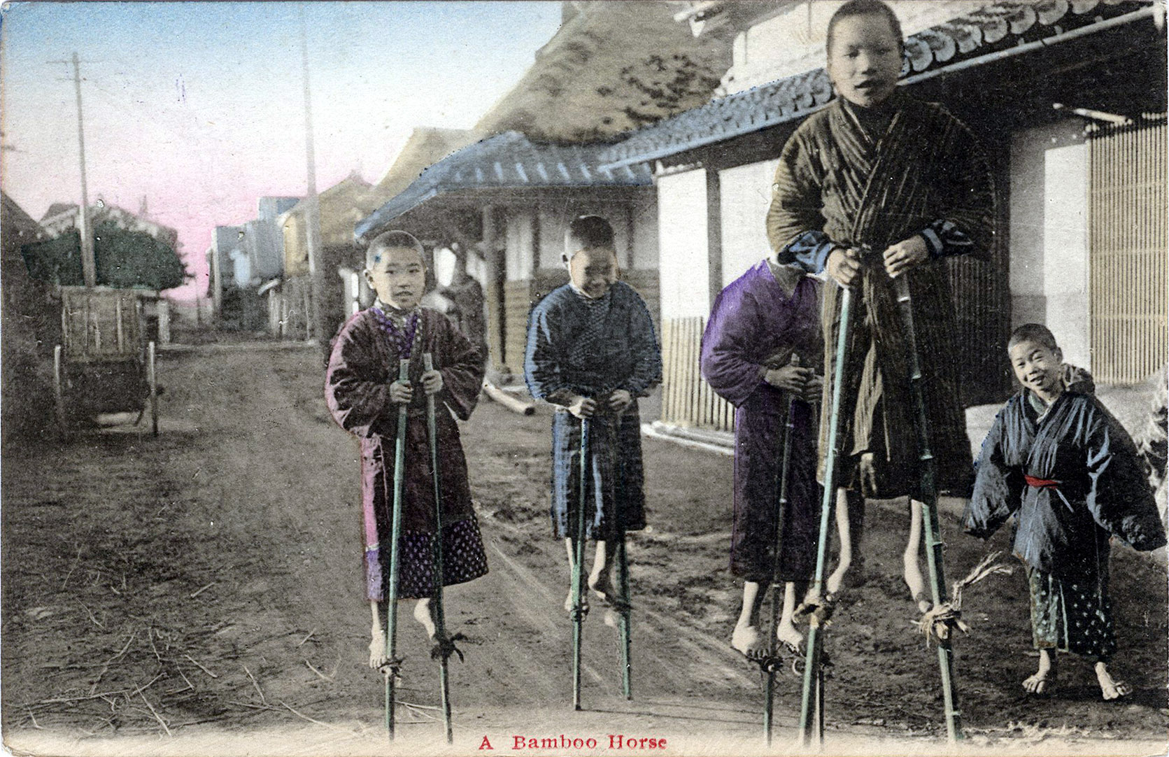 “Takeuma (lit. ‘bamboo horse’) is the Japanese version of stilt walking and is thought of mainly as a children’s activity. The bamboo poles typically have perpendicular footrests attached to them, and it took quite a bit of practice to be able to walk using the stilts.