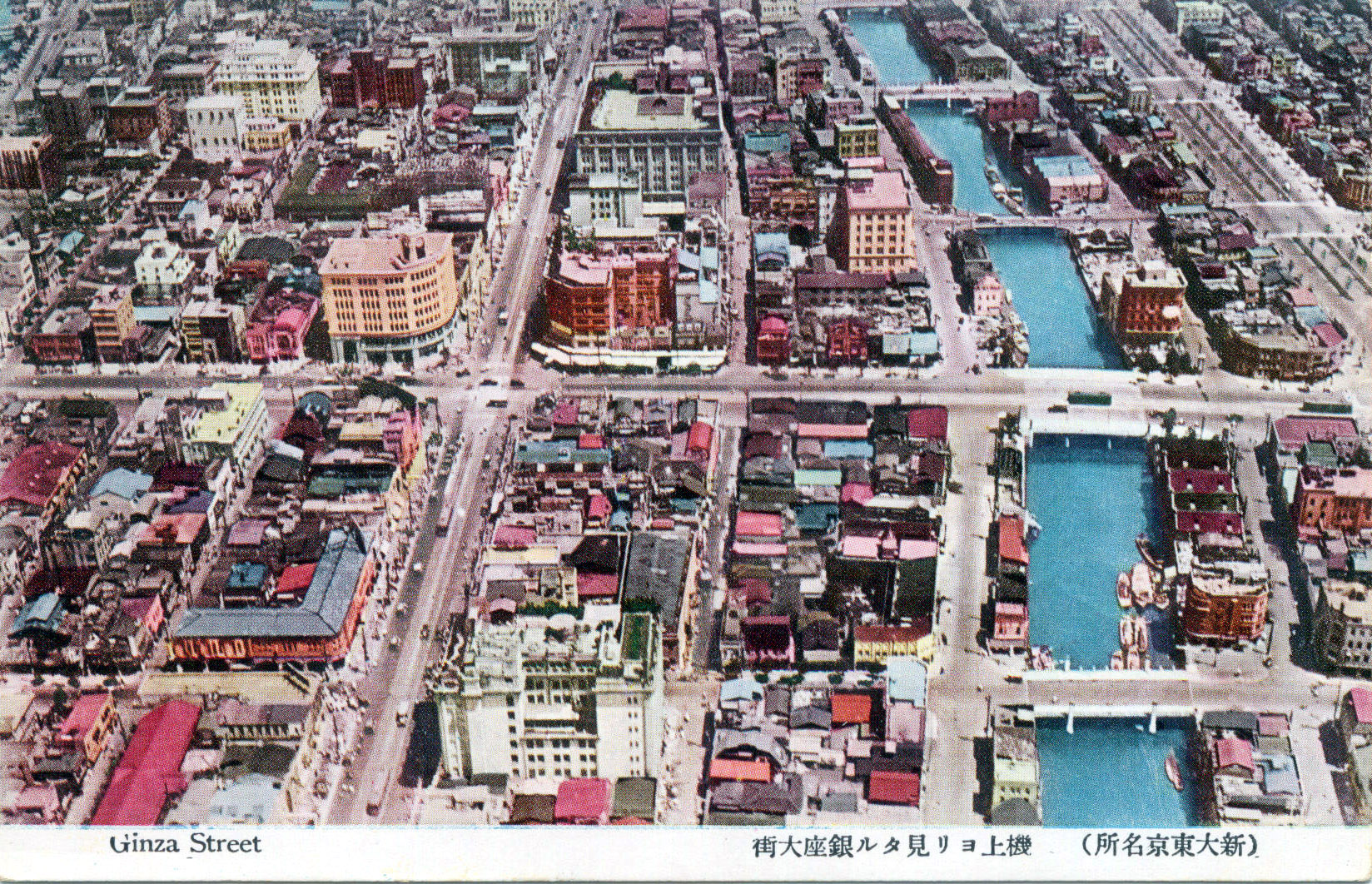 - C. Aerial view of Ginza Crossing, c. 1940.