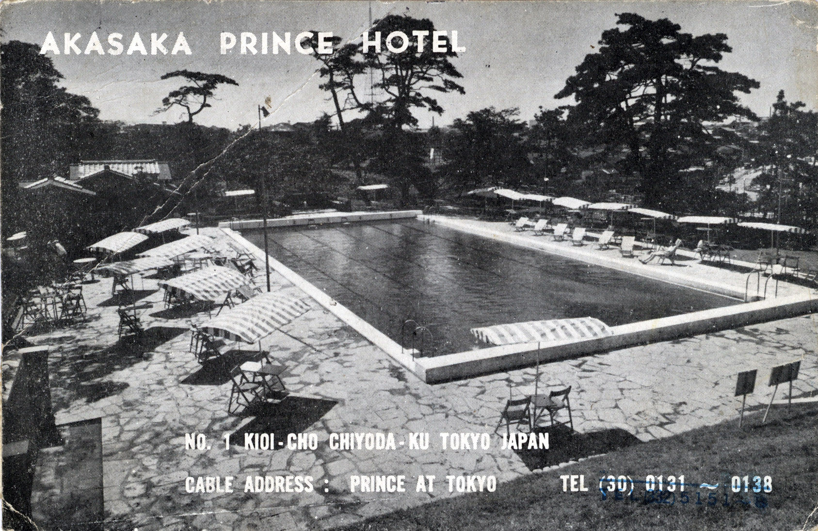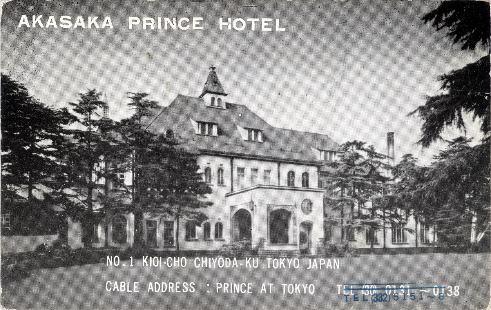 Exterior of the Akasaka Prince Hotel, c. 1960. Later called the “Classic House” after expansion of the hotel grounds in the early 1980s, it was on the grounds of the former Kitashirakawa estate of Prince Yi Un, the last crown prince of Korea.