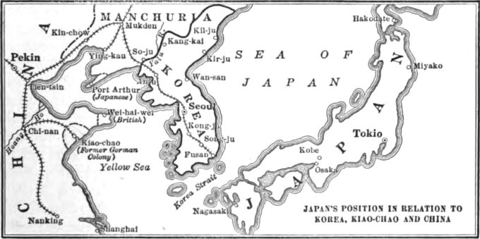 “Japan’s position in relation to Korea, Kiao-chao and China”, 1914. [Source: A Brief History of the Great War, 1920.]