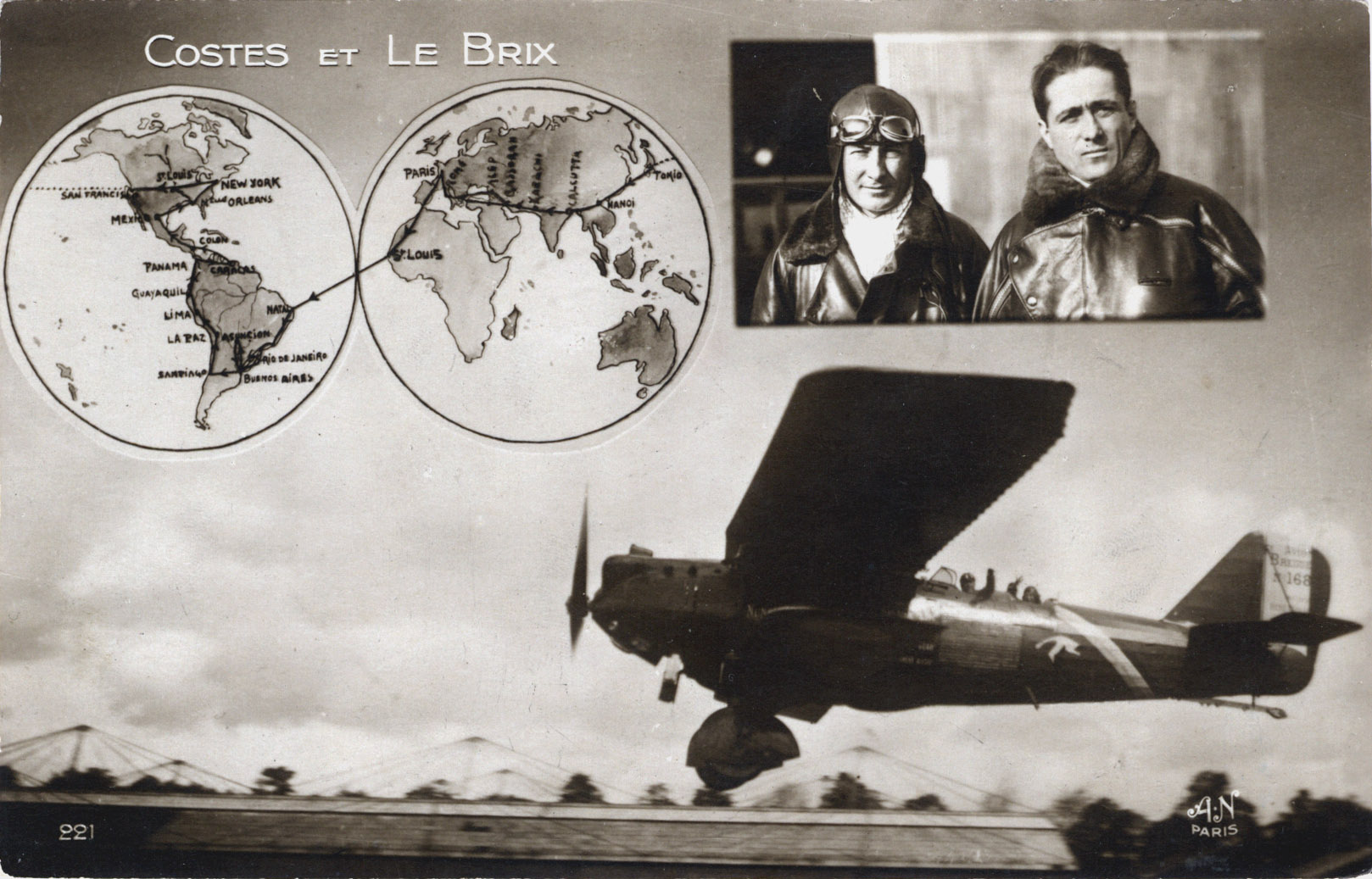 From the wiki: “On 10 October, Lt. Cmdr. Joseph Le Brix and the French aviator Dieudonné Costes left Paris in the Breguet 19 G.R. Nungesser-Coli to attempt a trip around the world, with Costes as pilot and Le Brix as copilot and navigator. Their first leg was a flight to Saint Louis, Senegal, where they landed on 11 October. The second leg was the world’s first aerial crossing of the South Atlantic Ocean, flying from Saint-Louis to Port Natal, Brazil, on 14–15 October. The two men then visited every country in South America before flying north across Panama and Mexico to the United States, reaching Washington, D.C., on 6 February 1928. By this time, their friendship had broken down, to the point that they almost had a fistfight during a reception hosted by the French ambassador in Washington.
