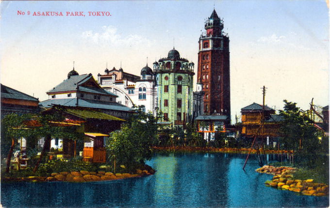 - Theater Street (Rokku), Ryounkaku (Twelve-Storeys Tower), and Asakusa Park, c. 1920.