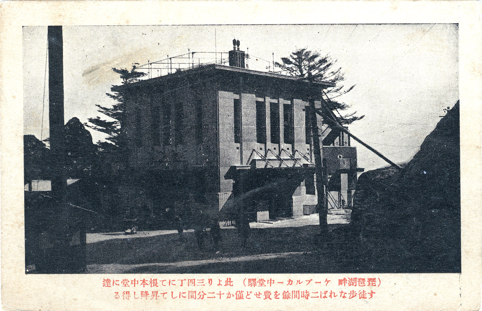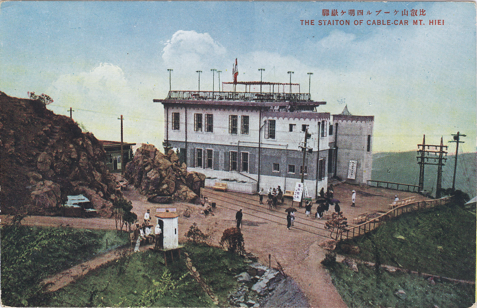 - Cable-car station “Shimeigatake”, Eizan Sky Cable, Mt. Hiei, Kyoto, c. 1930, with a roof-top patio.