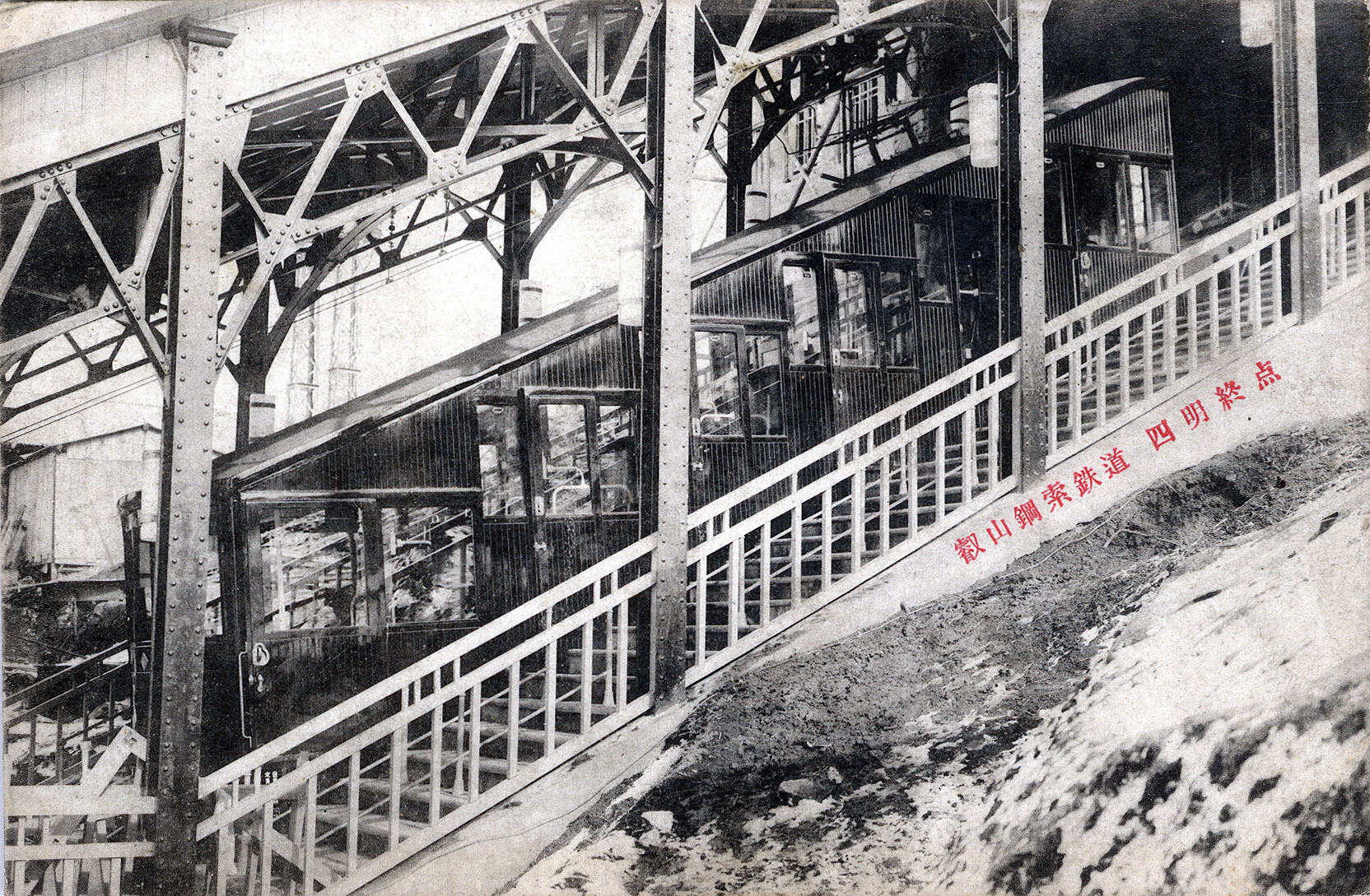 Eizan Cable Car, Shimei Terminal, c. 1930, illustrating the steep incline along its route up the mountain.
