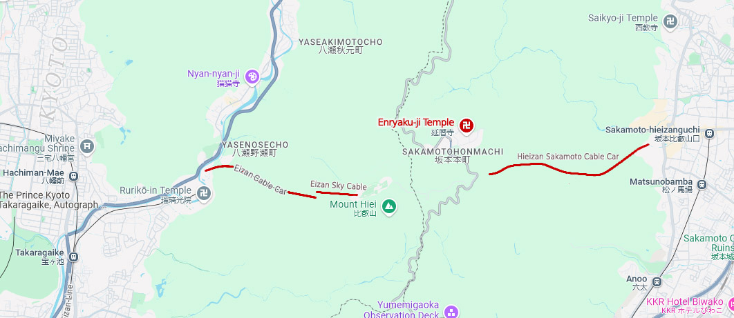 The Hieizan Sakamoto Cable Car is Japan’s longest funicular cable car line, and it plays a notable role in connecting visitors to Mount Hiei from the town of Sakamoto in Otsu, near Kyoto. The line was established by Keihan Electric Railway Co., Ltd. and has been in operation since 1927, making it one of Japan’s oldest funiculars. Its primary purpose was to offer easier access to Enryaku-ji Temple, the UNESCO World Heritage site that sits atop Mount Hiei and serves as a significant center of Tendai Buddhism.