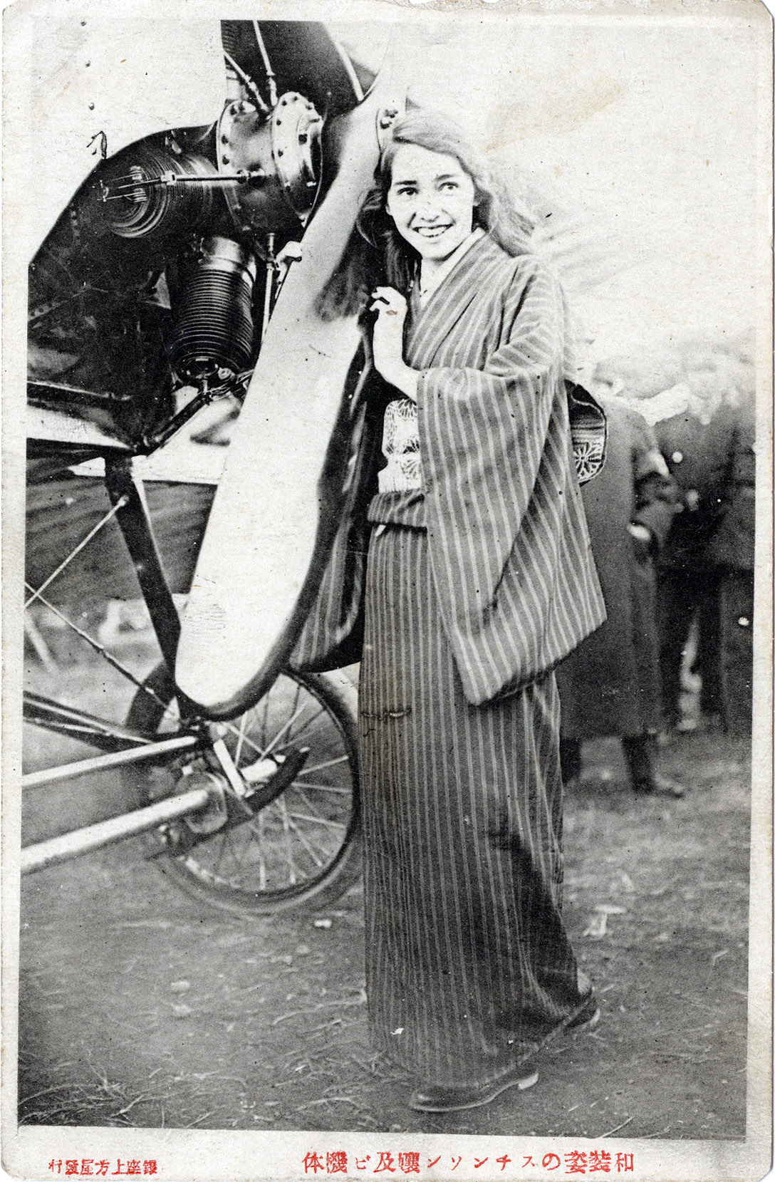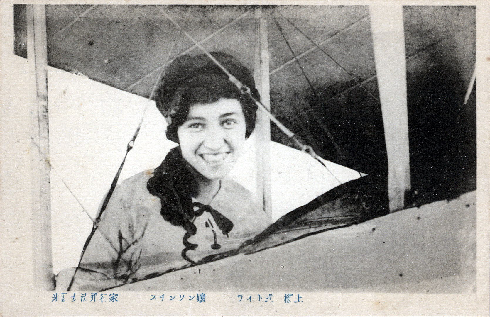 “In 1916, the year Amelia Earhart graduated from high school, Stinson became the first woman to fly in the Orient. Fan clubs developed all over Japan to honor the ‘Air Queen’.