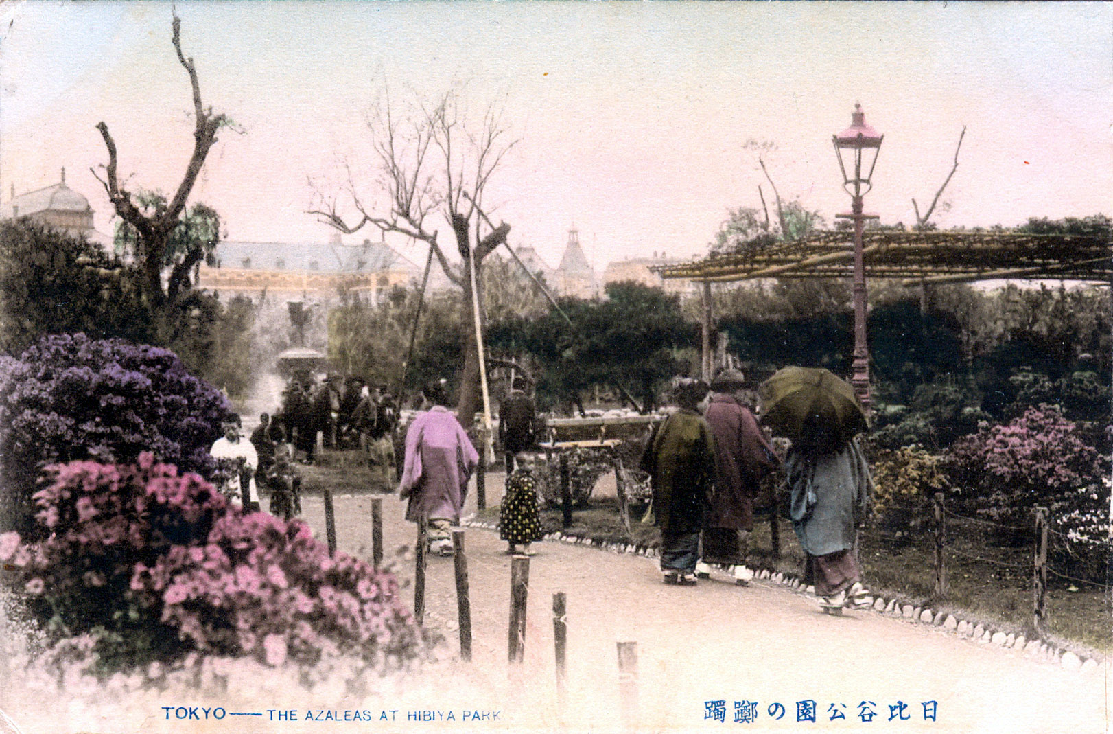 - “The azaleas at Hibiya Park”, Tokyo, c. 1910.