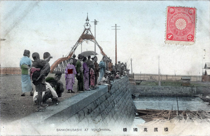 “With the view of connecting the city of Yokohama and the new reclaimed compound, an iron bridge 42 ft. in width is built and denominated ‘Bankoku Bashi’ (‘The Bridge to 10,000 Nations’).”