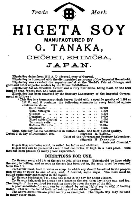“In 1914 the Hamaguchi brothers joined Tanaka along with another Chochi shoyu maker, Fukui Kichibei, to form Choshi Shoyu Co. Ltd. Each family continued to produce their own brands of shoyu but around 1925 Higeta, which had been Tanaka’s brand, became the sole company branded product. An ambitious plan of expansion was drafted soon thereafter to leapfrog Higeta over the Yamasa shoyu brand, its local rival begun in 1645. But Higeta became overextended and by 1937 Kikkoman stepped in to purchase 80% of Higeta’s outstanding shares.