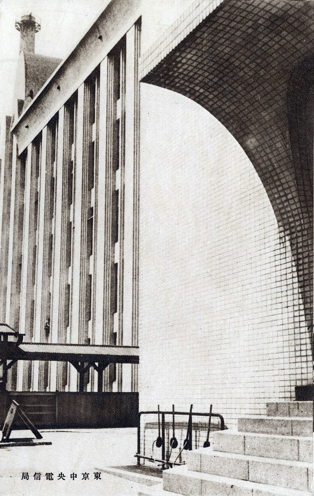 Tokyo Central Post Office, c. 1935. This postcard image is of the southwest corner of the building where architect Yoshida Tetsuro ‘turned the corner’.