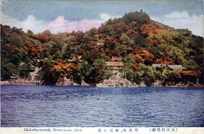 “The largest of the islands is Oki-no-shima, some 3 miles off the eastern shore of the lake. The most picturesque is Chikubu-shima near the northern end of the lake. So fair is this islet in the midst of the opalescent waters that the landscape around it presents a dreamland of ethereal charm, completely captivating a traveler’s fancy. It is the cynosure of the lake scenery and has long been revered as a spot of holy pilgrimage by Nature’s devotees. On this islet are a temple dedicated to Kannon and a Shinto shrine of Chukufusuma, both being creations of the 16th century when our architecture had a period marked by grandeur of construction and magnificence of ornamentation. They are perfectly set in the landscape, and delight the eye of pilgrims with the stately beauty of their architecture.”