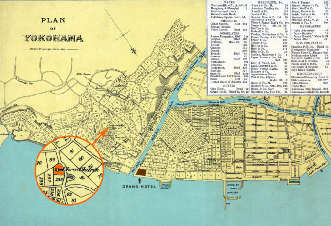 “The end of the first Church [built of wood and completed in 1864] remains a mystery but the evidence that services were held in the Public Hall prior to the completion of the new building indicates a sudden and unexpected end of the old building. Was it fire? Hardly, for someone would surely recall such an event. It is possible that the building was rendered unsafe due to the ravages of termites which so quickly destroy woodwork in this part of Japan once they get a hold. This however can only be speculation.