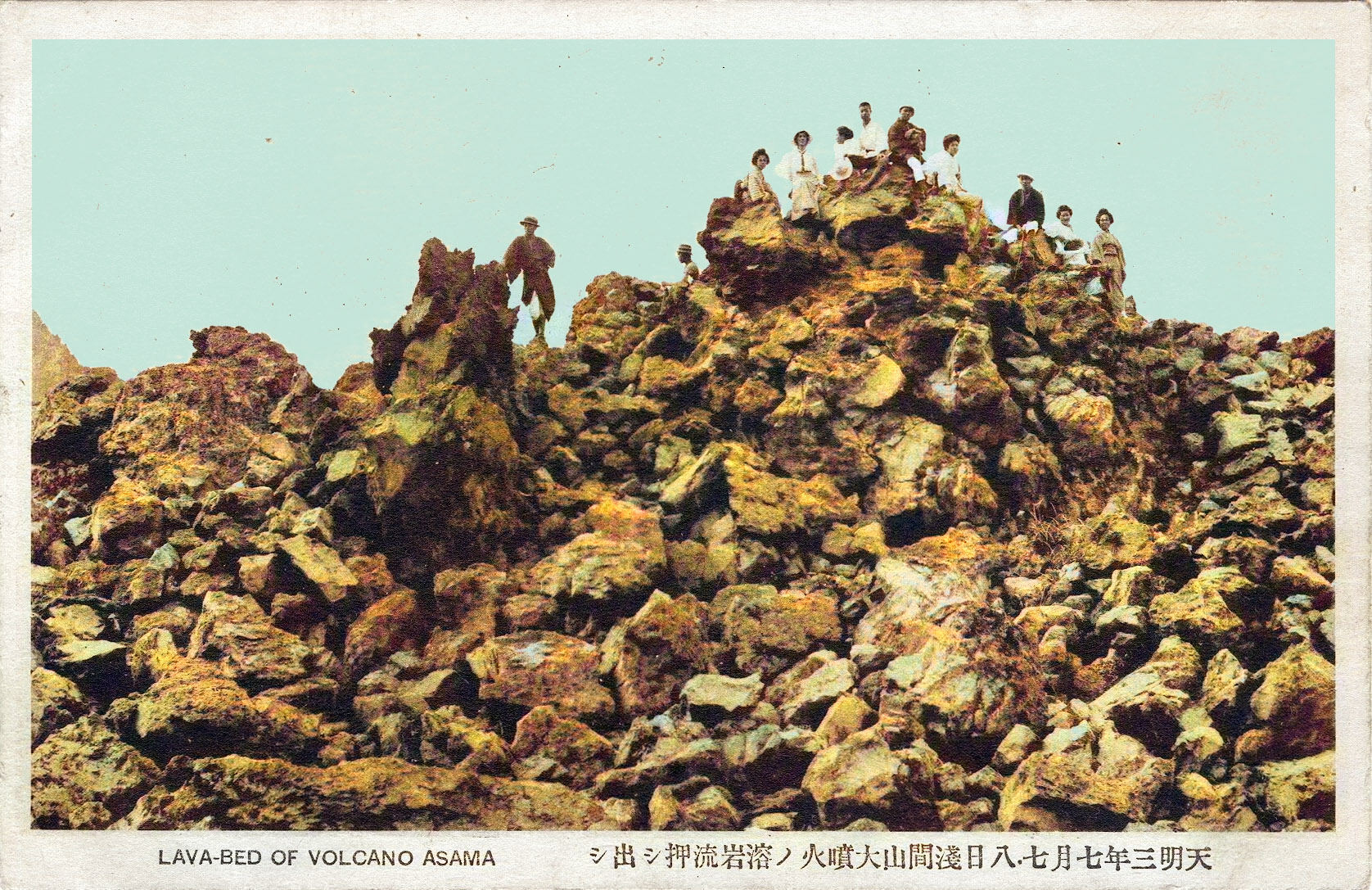 “Lave-bed of volcano Asama” (colorized), Karuizawa, c. 1920. (Gift of J. Harper Brady Sr.)