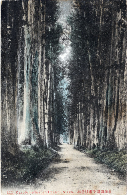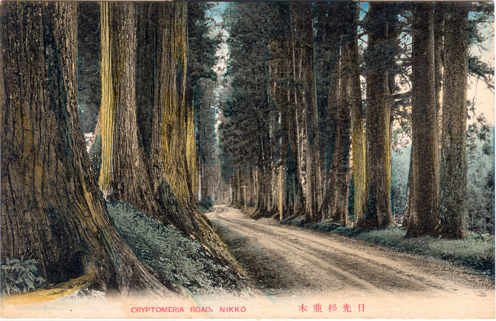 “The magnificent Cryptomeria Avenue which parallels it for some distance, leads brokenly to Nikko and terminates at the foot of the town. Travelers with ample time at their disposal sometimes alight at 21 M. Imaichi, and walk the remaining 4 M. to Nikko beneath the lofty trees.