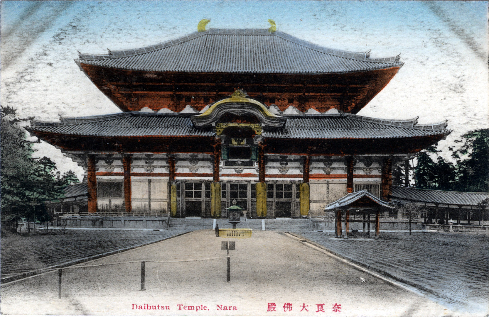 “Up to the beginning of the 8th century, the Imperial Court changed its location at the accession of each sovereign, and the Court’s place of residence naturally became the official metropolis. A city whose life was limited to the duration of a single reign, could not possibly attain any commercial or architectural vestiges of greatness. But Nara remained the metropolis during seven reigns (709 to 784 a.d.), and its seventy-five years of existence sufficed for the building and furnishing of many imposing shrines and temples, the laying out of a noble park, and the casting — after seven unsuccessful attempts — of a colossal image of Buddha, which now stands in the temple called Todaiji, and enjoys the reputation of being the biggest thing of the kind in Japan.
