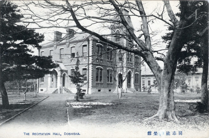 “… Because he had assisted Japanese dignitaries in their missions to the Occident, when there were few Japanese who spoke English, they assisted him in their turn to organize the first Japanese Christian school forty years ago. Upon the death of its founder Doshisha school won the moral backing and financial support of the Congregational missions of the United States, which enabled the school to develop into the first private private university in Japan. The Doshisha University now has colleges for divinity, politics and economics, and English literature, with more than 1,000 scholars in these colleges and preparatory schools.