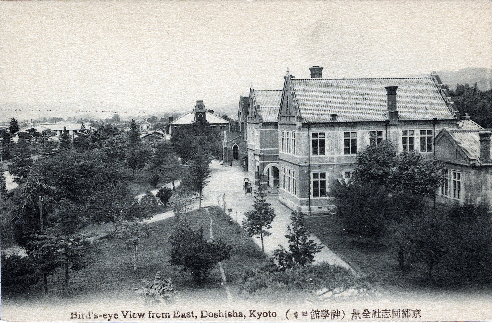 “Bird’s-eye view from [the] east, Doshisha University”, Kyoto, c. 1910, looking toward Recitation Hall.