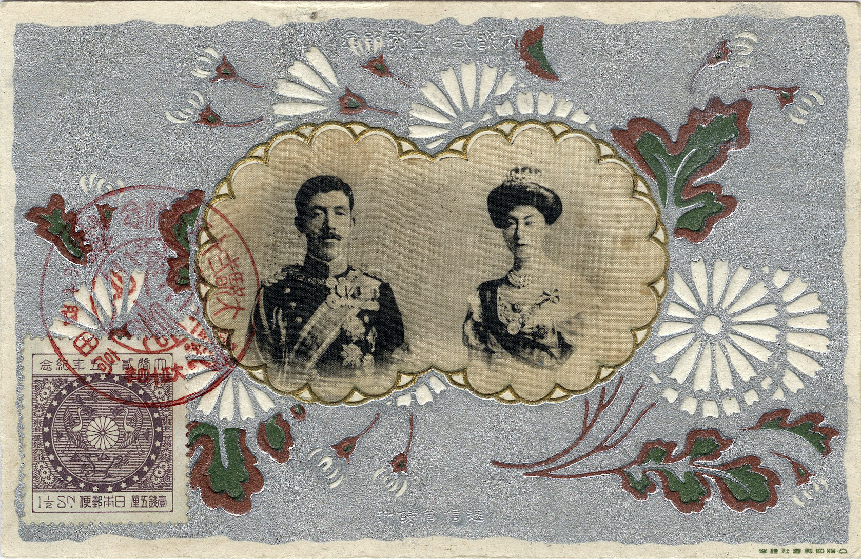 Emperor Taisho and Empress Teimei, 1925. Commemorative postcard for their Silver Wedding Anniversary (1900).