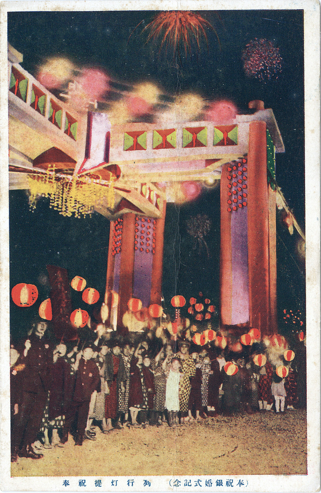 - Nighttime public celebration of the Imperial 25th wedding annniversary, 1925.
