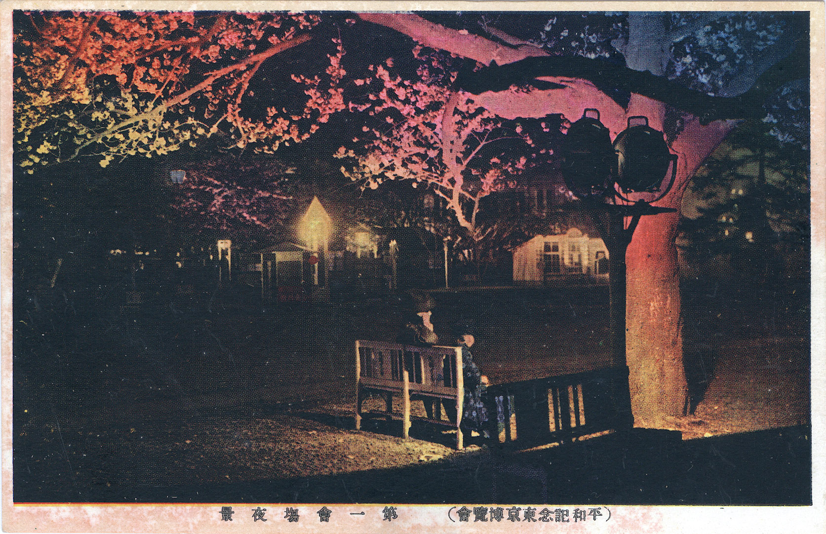 - Foreign Hall evening illumination in the 2nd Section. Peace Commemorative Exposition, Ueno Park, Tokyo, 1922.