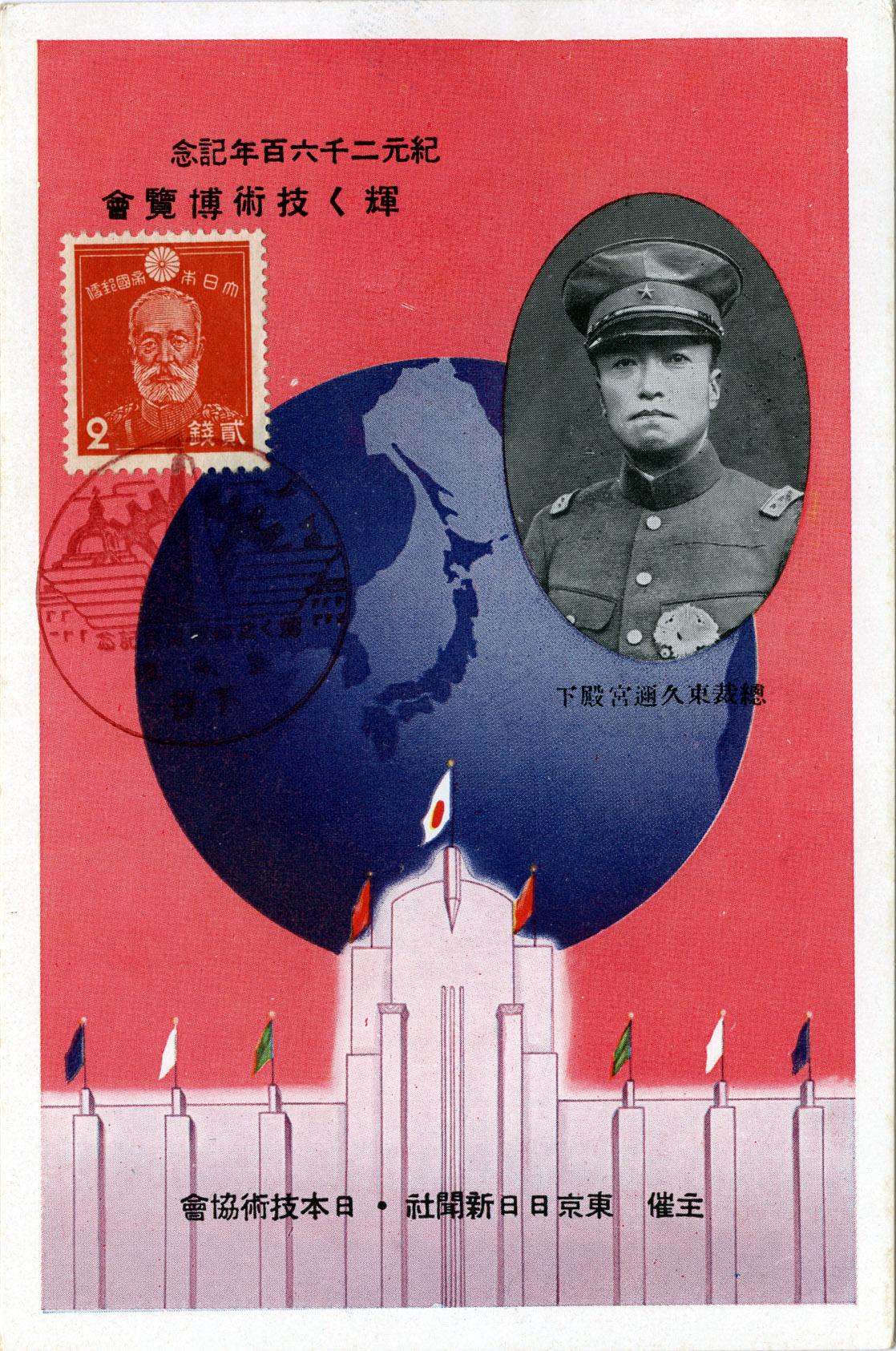 Exposition of Shining Technology, 1940. In an effort to bolster national morale, the 2600th anniversary of the founding of the Japanese Empire was celebrated in 1940. The special dating system (no longer used) was called koki, the Imperial Dating System. The first year assigned was 600 BC, the date given the mythical founding of Japan by Emperor Jimmu. The 2-sen stamp depicts the late General Nogi Maresuke, hero of the Russo-Japanese War (1904-1905).