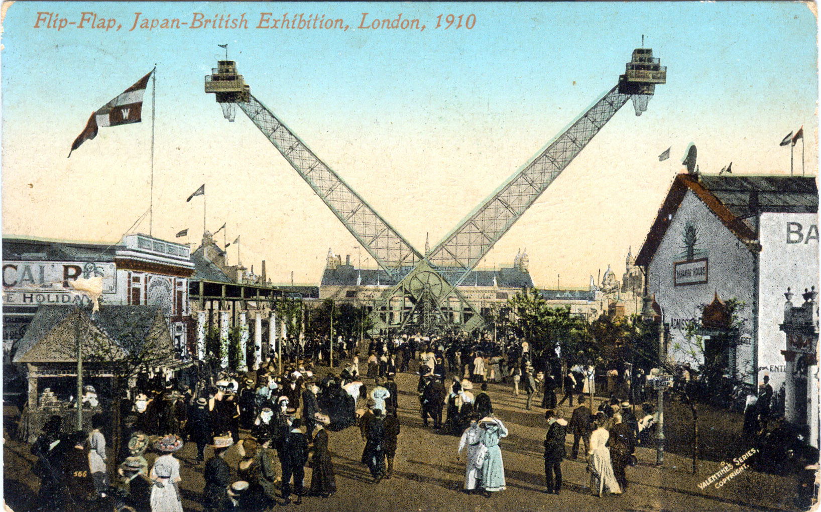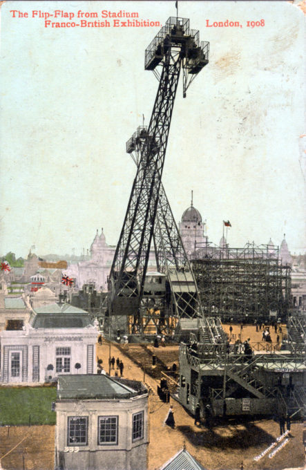 “The Flip-Flap from Stadium. Franco-British Exhibition”, London, 1908. Two years later, the amusement ride would be used again at the Japan-British Exhibition.