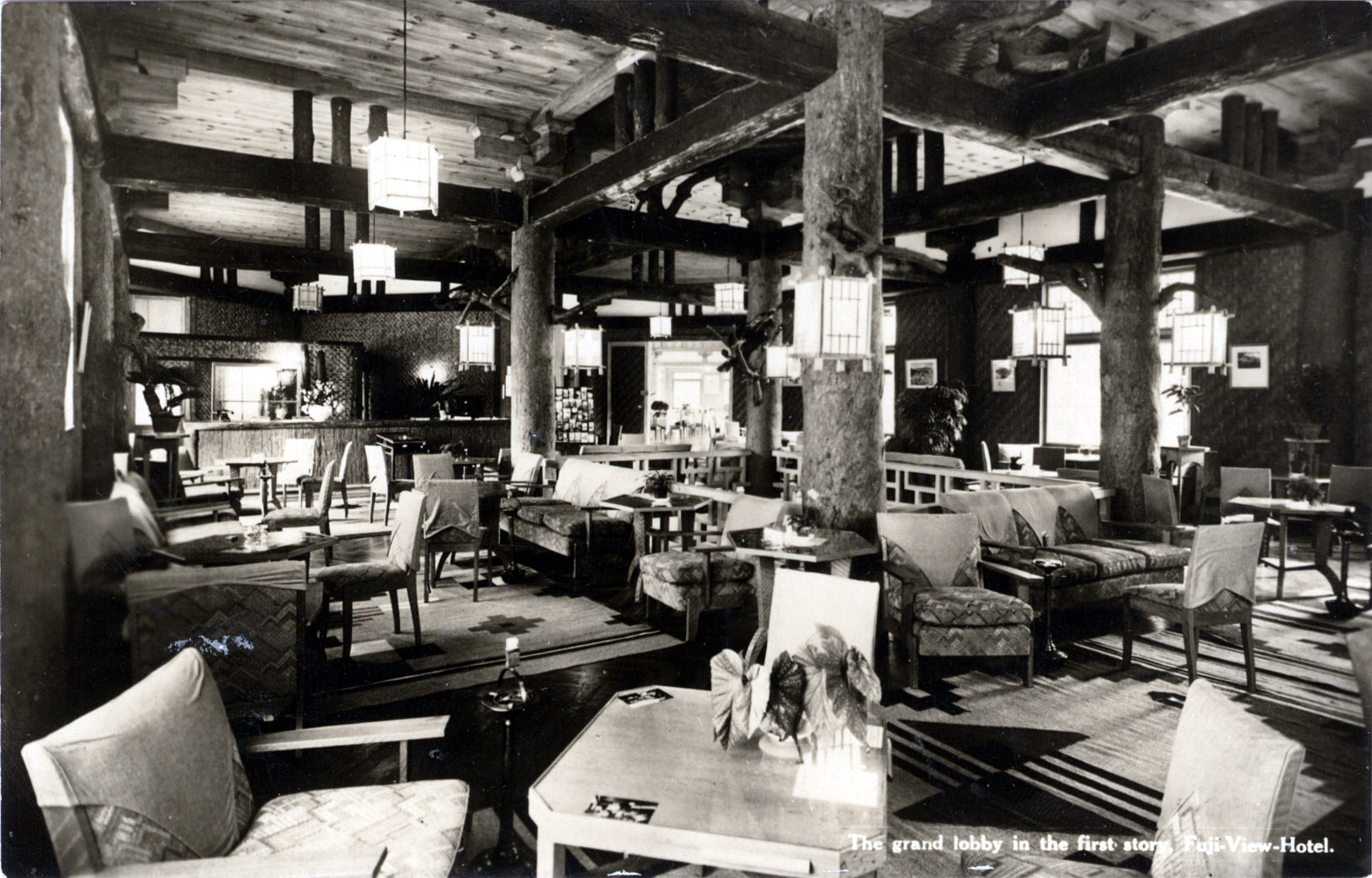 The Grand Lobby, Fuji View Hotel, Hakone, c. 1950.